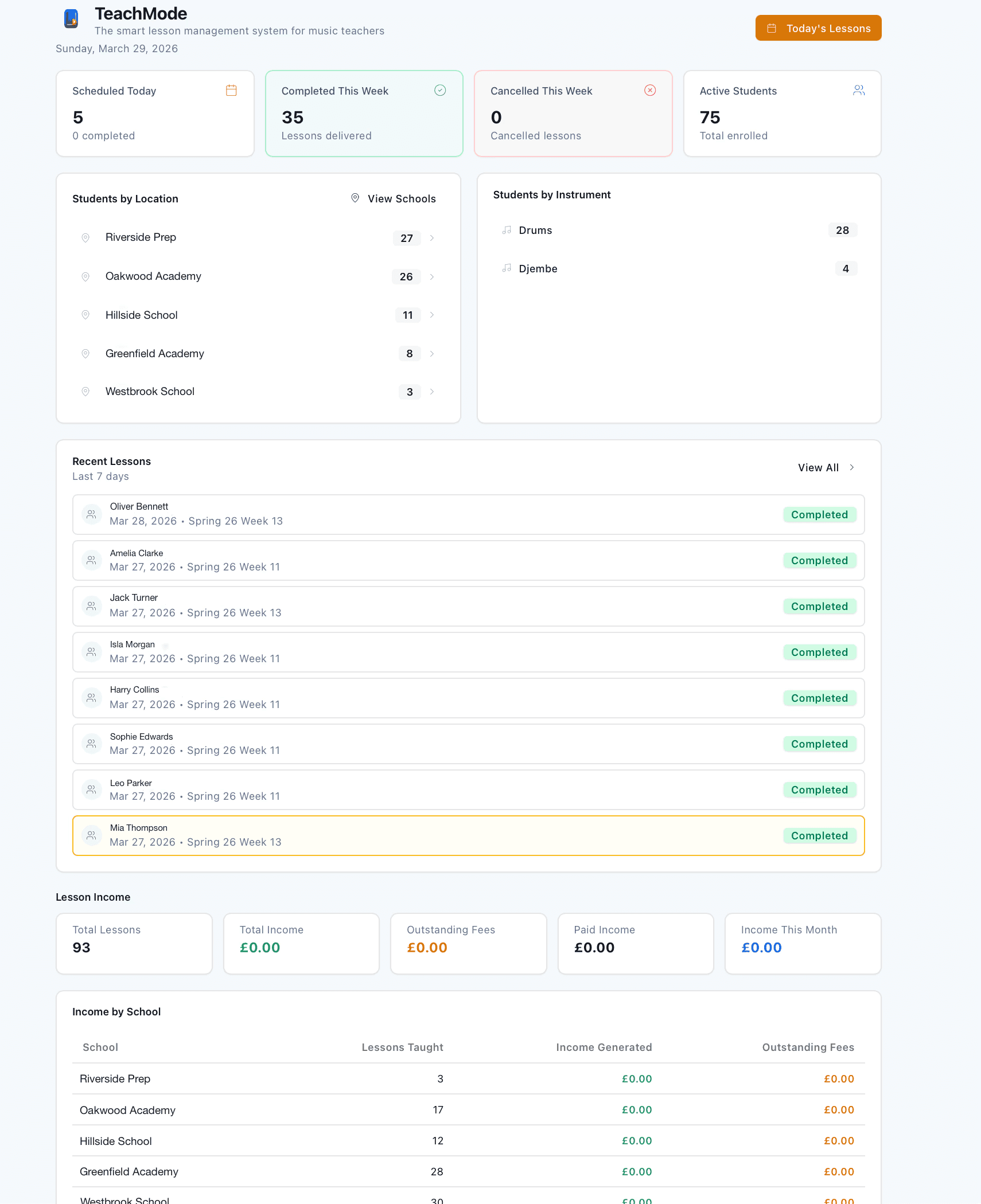 Plan lessons, track progress, manage schedules, and handle invoicing — all in one simple app built for music teachers.