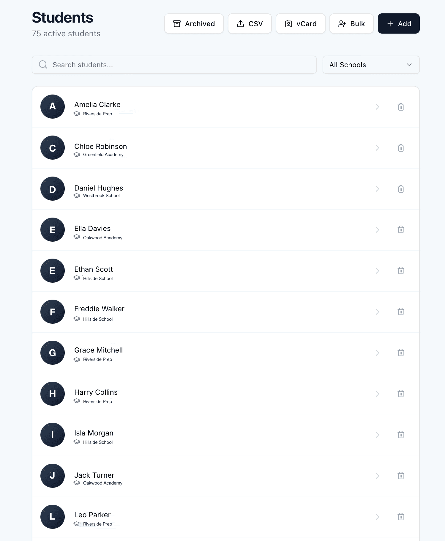 Bring across parent and guardian contact details so communication stays simple from day one.